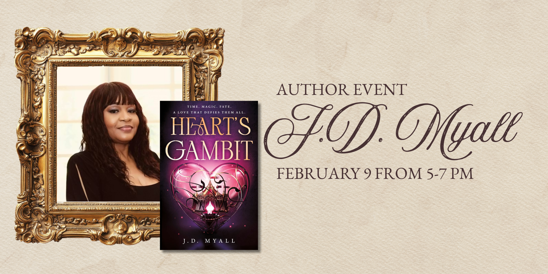 Just in time for Valentine’s Day, author J.D. Myall will be at Scholar & Scribe to celebrate the release of her debut fantasy novel, Heart’s Gambit. The Night Circus meets Caraval in this “high-stakes fantasy that’s impossible to put down” (Kristen Ciccarelli, #1 New York Times bestselling author of Heartless Hunter)” about competitors from two time-traveling Black families who must fight in a deadly magical duel — and find themselves falling in love. Perfect for young adults & seasoned romantasy readers, J.D. Myall’s Heart’s Gambit is an irresistible journey of dazzling magic, unforgettable first love, and daring to dream of something more.