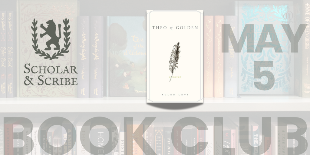 Our Christian fiction selection for May is Theo of Golden by Allen Levi If you haven’t already, please complete the form and be sure to purchase your copy at Scholar & Scribe to read beforehand…and get 10% off when you do!