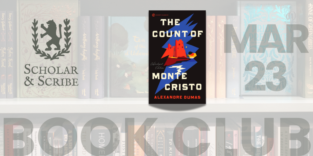 Our Quarterly Classics selection for February is The Count of Monte Cristo by Alexandre Dumas. If you haven’t already, please complete the form and be sure to purchase your copy at Scholar & Scribe to read beforehand…and get 10% off when you do!