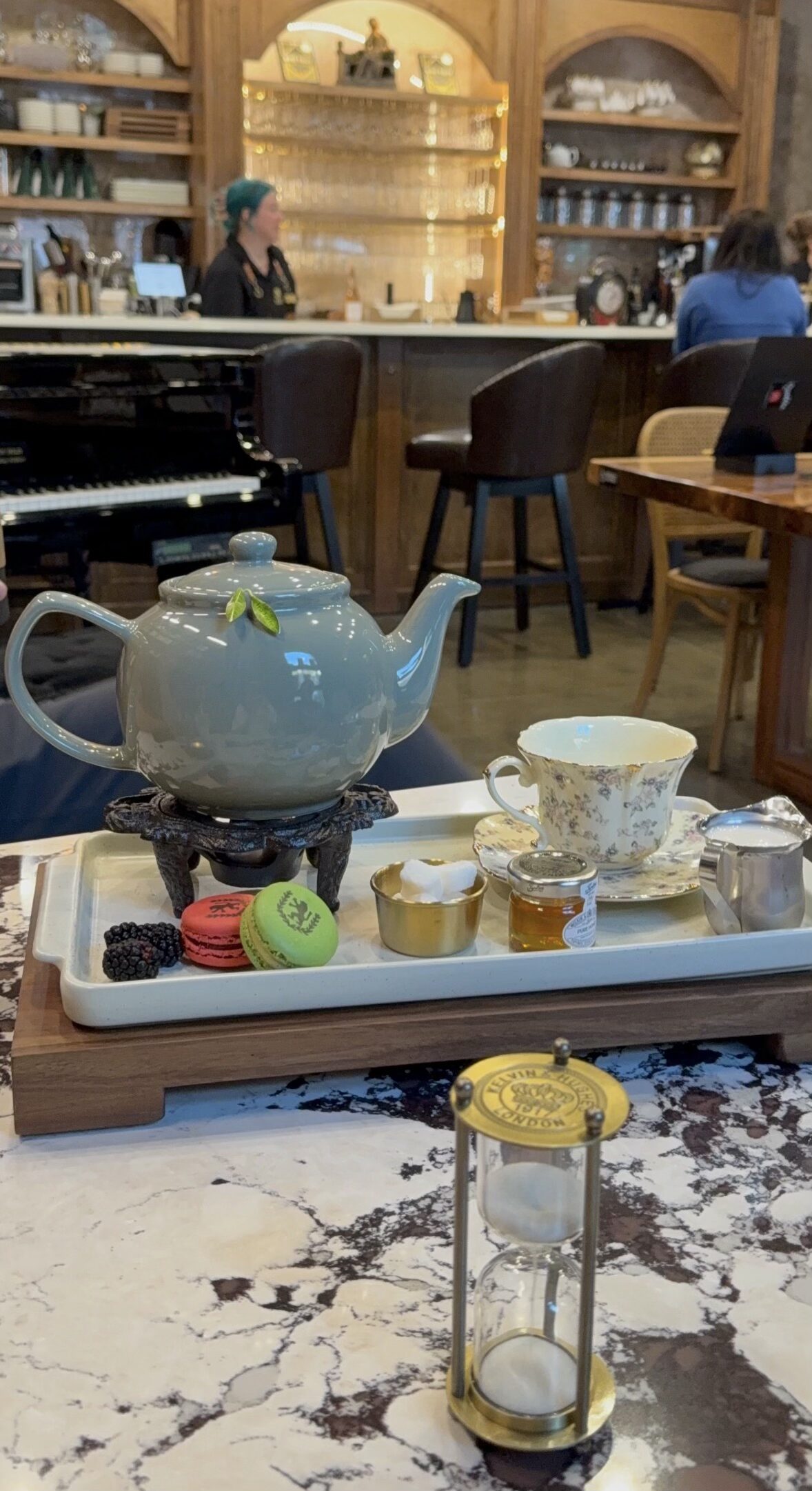 Our beverage program reflects the same care we bring to our shelves. Guests can enjoy curated wines by the glass and bottle and thoughtfully prepared teas, alongside light accompaniments such as pastries, charcuterie, and sweet treats designed for sharing.